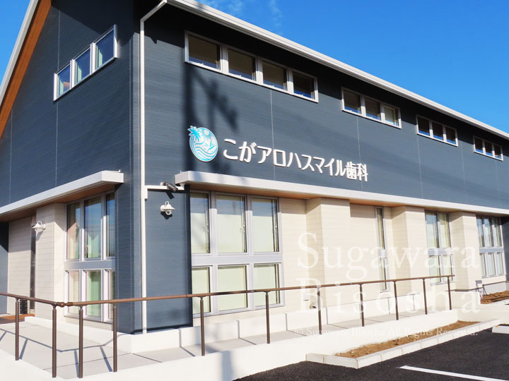新規開業の歯科クリニック様です。LED外部照明を使用したクリニック自立看板・歯科クリニックのロゴマークを浮き出し文字した平面浮き出し文字看板、その他室内医院サインをデザイン・製作させていただきました。